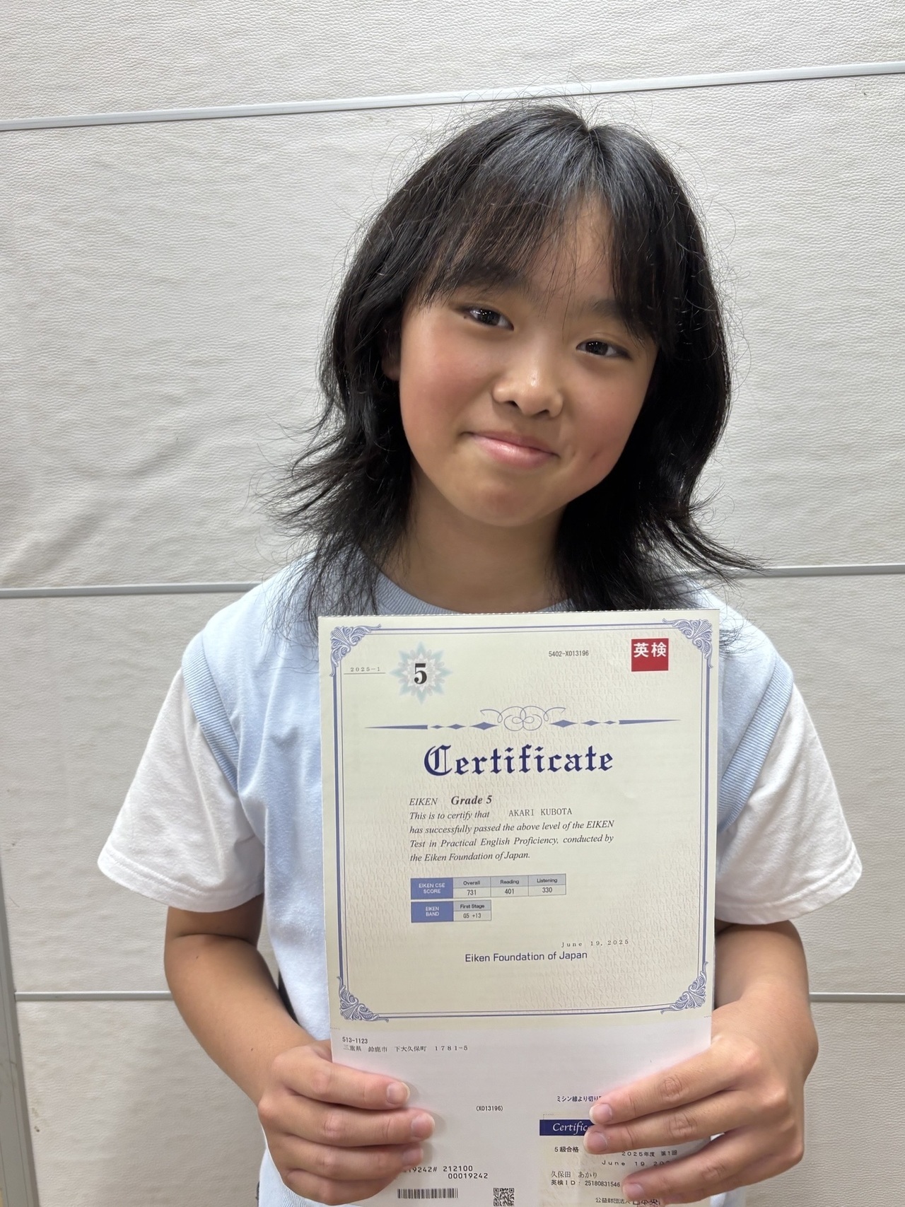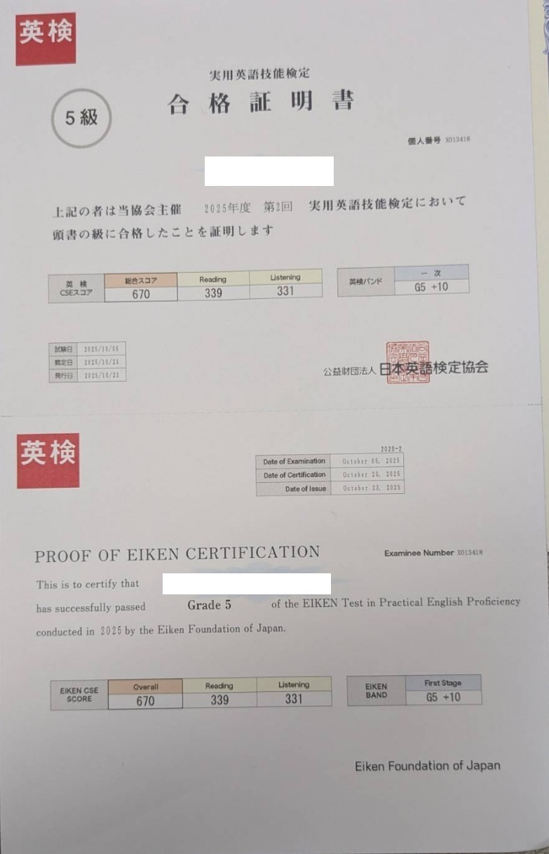 そしてなんと今回、小学5年生で3級(中学卒業レベル!)に合格された生徒様もいらっしゃいます!素晴らしい限りです。